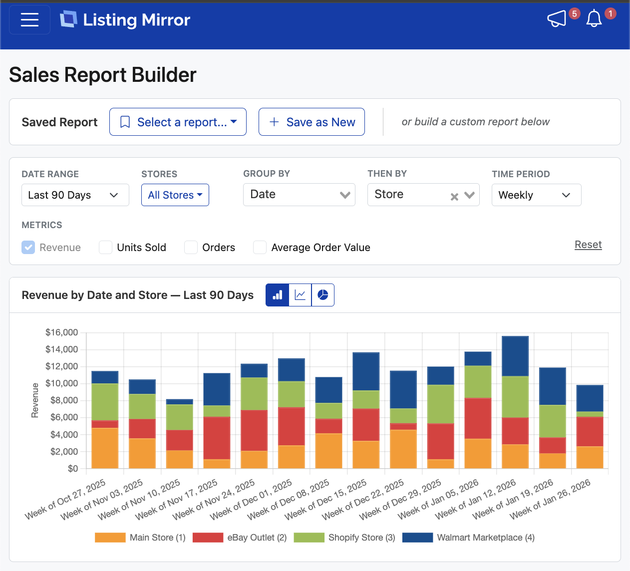 Listing Mirror’s Sales Reports give you a single, accurate view of your sales across channels, products, and time periods—so you can make decisions with confidence.